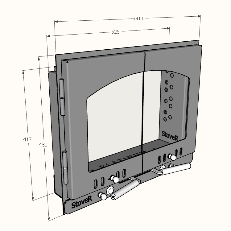 Дверца каминная StoveR GOLD 600 мм прямая, двухстворчатая, подового горения.