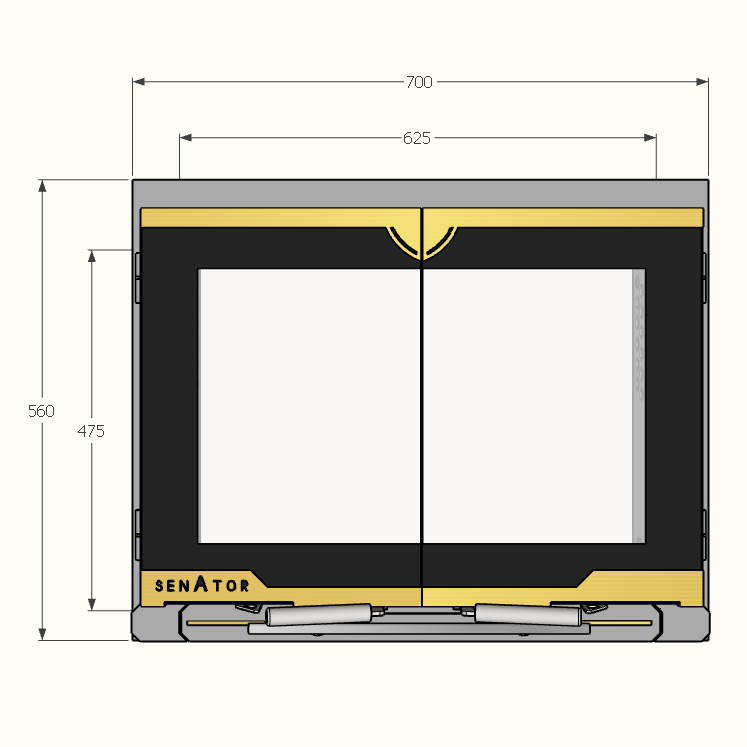 Дверца каминная StoveR SENATOR 700 прямая, двухстворчатая, подового горения, с панорамным остеклением с самоохлаждением и обдувом стекла. Дополнительное поддувало для горения огня. Обдув стекла в самой створке. Панорамное стекло - главное отличие от серии Стандарт и других производителей. Подходит для всех видов печей и каминов с колосником или без колосника. Возможно использовать продолжительное горение более 12 часов.