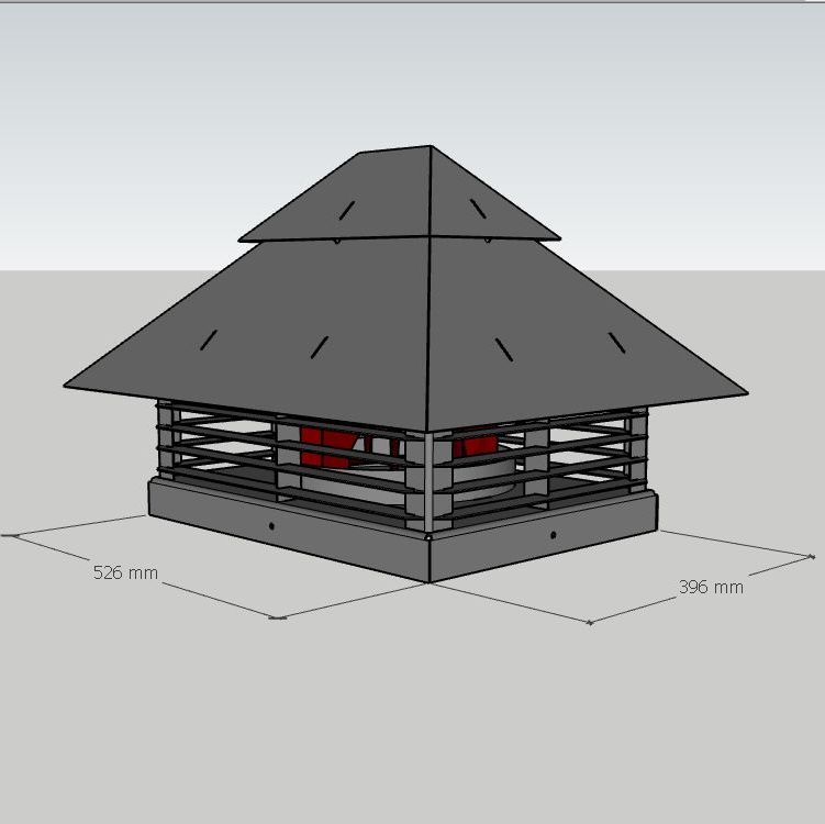 Посадочный размер – 510 х 380 (труба в пятерик) под отверстие в трубе 250 х 125.