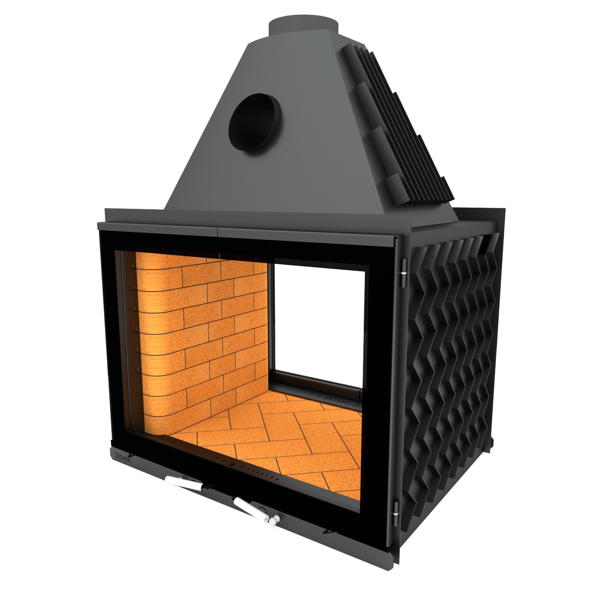 Каминная топка серии PLATINUM туннельная 1000, подового горения, с двумя распашными дверцами, открытие от угла. Предназначена для длительного горения. Теплоемкость каминной топки - 200 кг, т.е. полное остывание топки до комнатной температуры - до 4 часов.