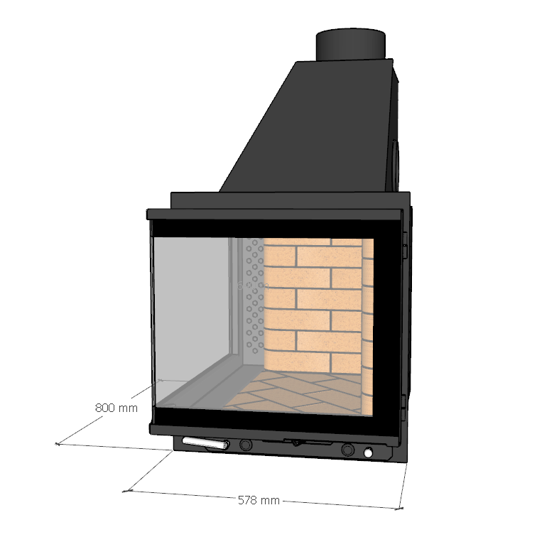 Каминная топка серии PLATINUM угловая правая 800, подового горения, с двумя распашными дверцами, открытие от угла. Предназначена для длительного горения. Теплоемкость каминной топки - 250 кг, т.е. полное остывание топки до комнатной температуры - до 4 часов.