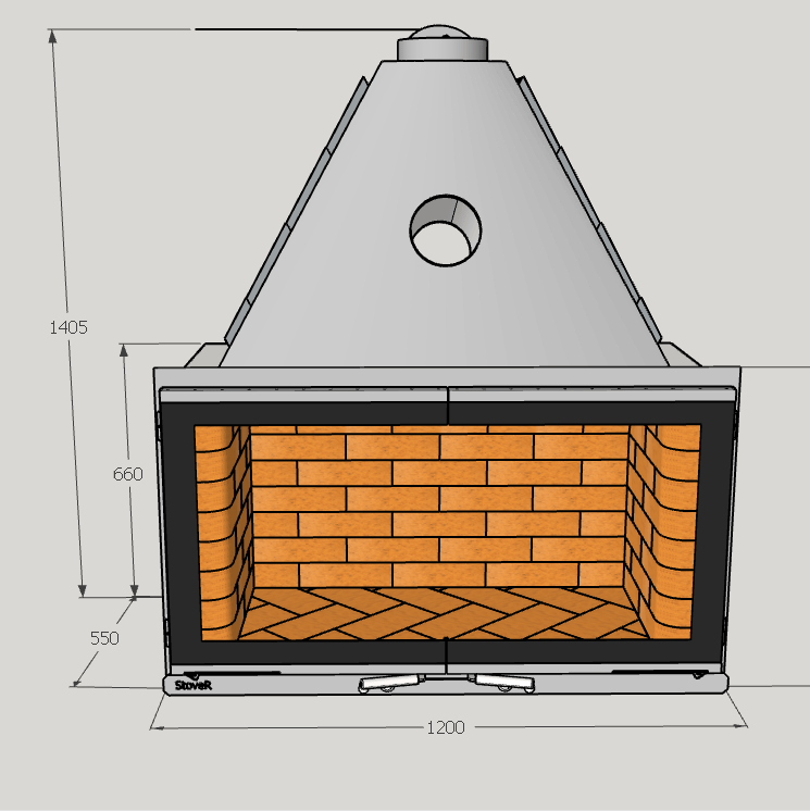 Каминная топка StoveR Platinum 1200 подового горения, с панорамным стеклом, футеровка шамот